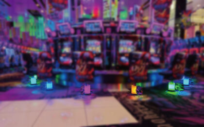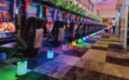 遊技機の大当たりに連動して、イスの根元が光り、駆け抜ける──。