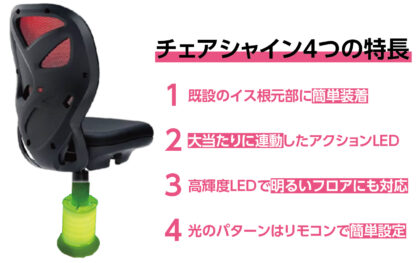 パチンコホールの既設イスに取り付ける大当たり連動アクションLED『チェアシャイン』