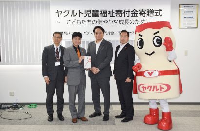 千葉県パチンコ・パチスロ店協同組合は10月29日、千葉県ヤクルト販売と共同で、千葉県児童福祉施設協議会(本間敏子会長)に100万円を寄贈した。寄付金は、児童養護施設や乳児院などで暮らす子どもたちの生活支援に役立てられる。同日、千葉県茂原市にある千葉県ヤクルト販売本社で贈呈式が行われ、協議会担当者に寄付金の目録が直接手渡された。