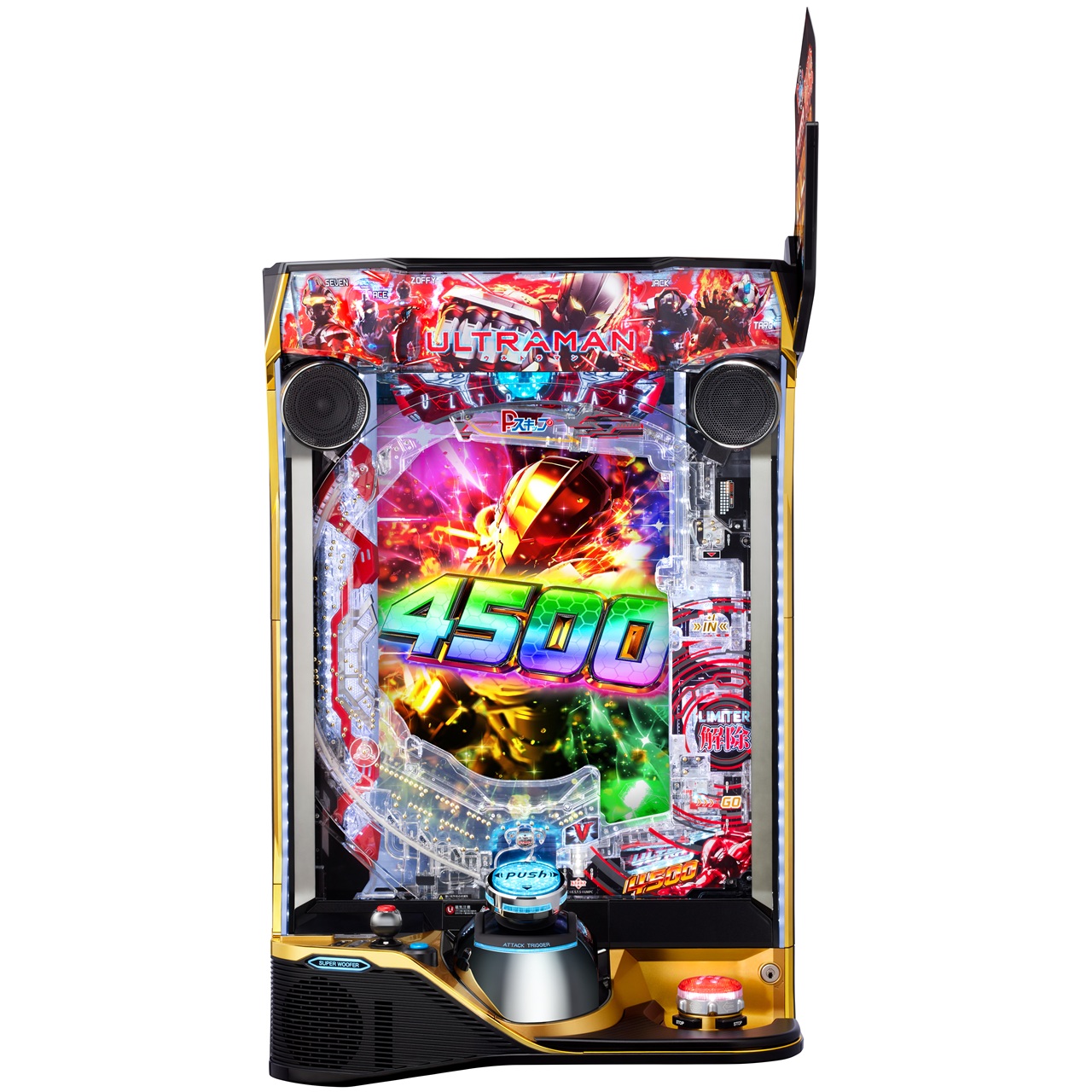 同機は図柄揃い確率約1/111.9のライト帯ながら、RUSH中の大当たり出玉は4,500個or9,000個という爆発力に特化したスペックが特長。さらに、『eシン・ウルトラマン』でも搭載された「P-スキップ機能」も搭載しており、通常時の時間効率も高まった1台となっている。