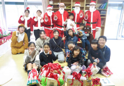 当日は、千原代表とグループ社員、また千原代表が会長を務める岡山市ぱちんこ・パチスロ店組合の関係者が参加。成通グループ社員がサンタクロースに扮し、子どもたちにクリスマスケーキやお菓子、おもちゃなどを手渡した。