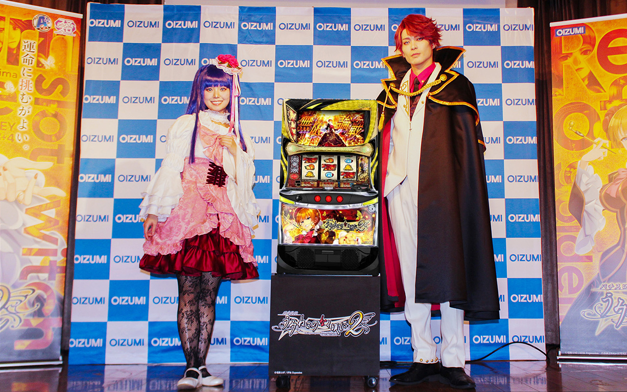 オーイズミは11月26日、スマスロの新機種『Lパチスロ うみねこのなく頃に2』(オーイズミ・アミュージオ製)のプレス発表会を、都内渋谷で開催した。当日は、スペシャルゲストとして、舞台版「うみねこのなく頃に」で右代官戦人役を務める俳優の川隅美慎さんと、古戸ヱリカ役の遥りささんが実際の舞台で着用していたという衣装で登場。発表会に華を添え、新台をピーアールした。