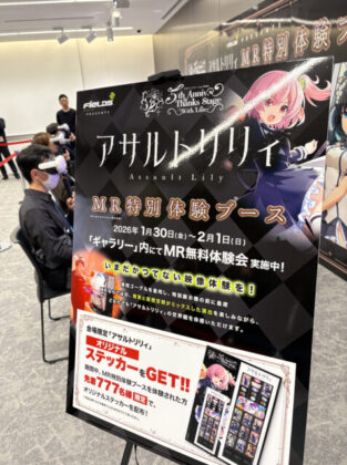 今回のイベントにおいて、とりわけ大きな注目を集めたのが、「MR特別体験ブース」の展開だ。最新のMixed Reality(複合現実)技術を活用したこのブースでは、専用ゴーグルを装着し、体験機のレバーを操作することで、現実空間と仮想映像が融合した大迫力の演出を創出。TVアニメ『アサルトリリィ BOUQUET』のエンディングテーマ「Edel Lilie」が流れ、音楽と完全に同期した映像演出によって、まるで作品の世界に入り込んだかのような深い没入感が提供された。
