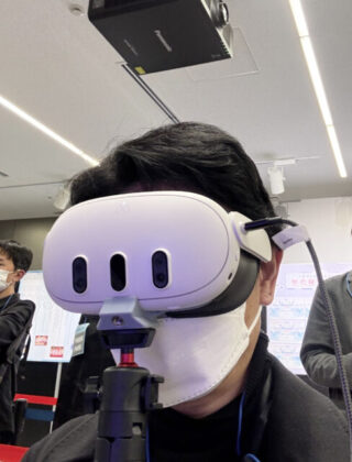 こちらはMR体験時に使用するゴーグル。片手で柄の部分を持ち、目に添えるだけで360度の演出が拡がる。