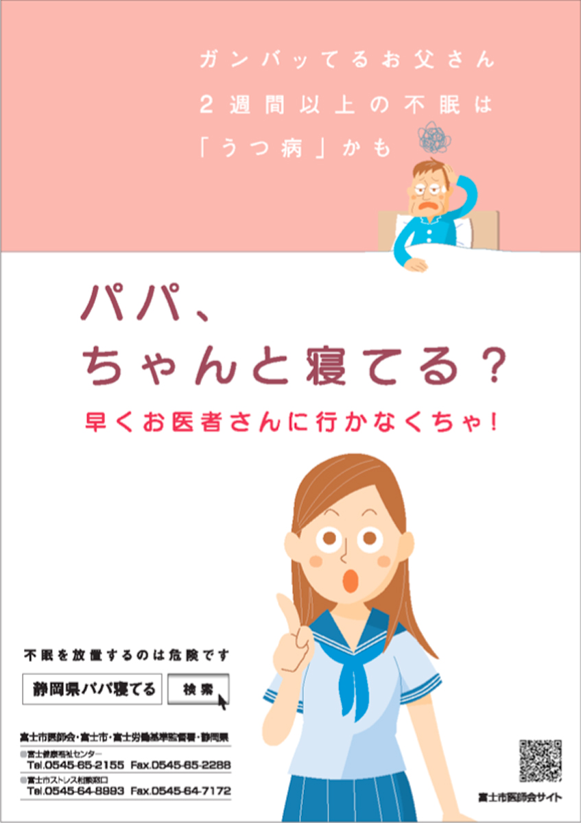 静岡県の富士市医師会が、うつ病・自殺予防対策の一環として不眠に関する啓発キャンペーンとして作成したポスター。