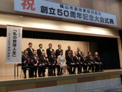 広島県の福山市遊技業協同組合(富山長鎬理事長)は2025年10月17日、福山ニューキャッスルホテルで創立50周年記念大会を開催した。昭和50年12月の創立から半世紀を迎えた節目の行事で、関係者91名が出席した。