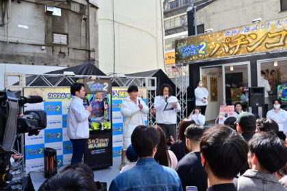 SANKYOは2月28日、渋谷道玄坂広場でパチンコ新台『eフィーバー ダンベル何キロ持てる?2』の導入を記念した体験型イベント「いきなり横川!&一球入魂」を開催した。