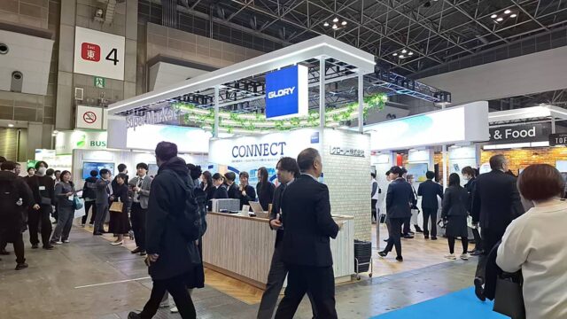 流通・小売り業や飲食店の課題を解決し、「生産性の向上」「人手不足解消」「販売促進」を実現する各種製品・システムを出展。店舗の現金データを一元管理できる『リテールマネジメントソリューション(参考出展)』をメイン展示した。
