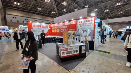 企業の自社製品化(量産)を実現するトータル支援サービス、新規事業創出支援サービスを提案。倉庫等の上部空間活用で保管量増とピッキング作業の効率化をダブルで実現する次世代倉庫ソリューションの模型デモ展示も行った。