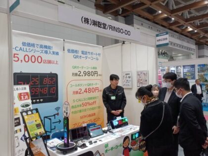 飲食店などに幅広く導入している「コールボタン」(S-CALL3)との併用もできる新製品「QRオーダーコール」を展示。QRコードを活用したオーダー・呼び出しシステムにより、店舗オペレーションの効率化と顧客満足度向上を実現する。