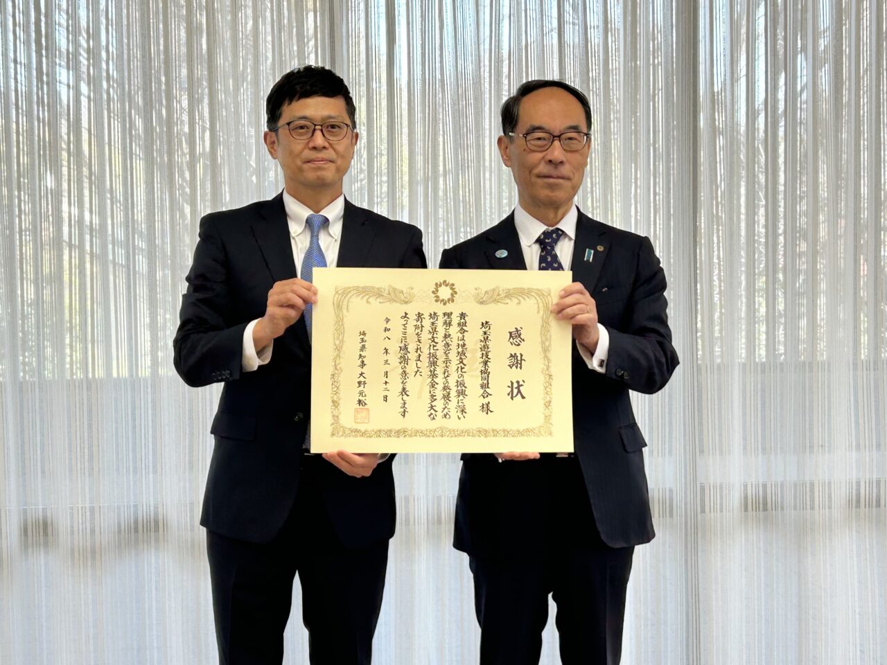 3月12日には埼玉県知事公館で感謝状贈呈式が開催され、同組合の趙顕洙理事長が大野元裕知事から感謝状を受け取った。同基金は、県内の文化芸術活動の振興を目的として設置されたもので、同組合の取組が地域文化の発展に寄与するものとして評価された。大野知事は「文化振興基金への継続的な協力に深謝するとともに、今後も県文化施策に協力いただけることを期待している」と述べた。