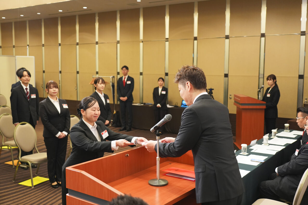 都筑晶裕代表取締役社長が訓示を行い、地域社会に貢献するという同社の行動指針の基、地域と関わりながら親しまれる存在になってもらいたいと述べた。また、手本となる存在になることを掲げ、「新入社員の立場で起こる失敗には必ずその裏でフォローする先輩の存在があり、その支えがあるからこそ、皆さんは安心して働くことができる。これから先、先輩という立場に変わる時には、先輩たちがつなげてきた思いと共に思いやりのある行動を身に付け『手本となる人』になってもらいたい」と成長に期待を寄せた。