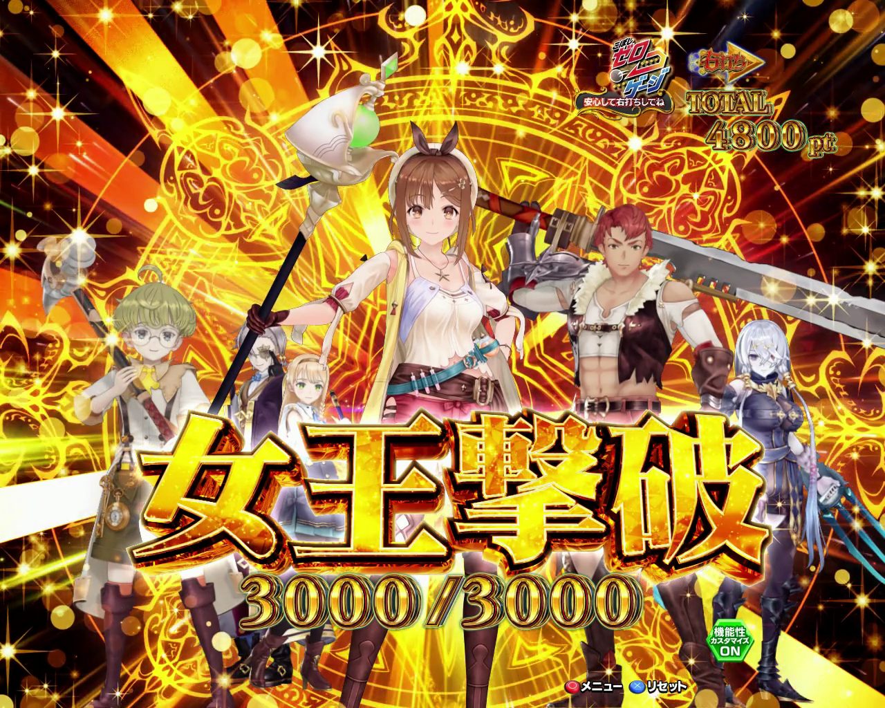 同モード中の大当たりの55%で3,000個の出玉を獲得できる「女王バトル」に突入。ラウンド消化中のバトルに勝利すれば、「最終決戦BATTLE4500」モードにステージアップする。そして、同モード中に大当たりすれば、4,500個の出玉に加え、最終ステップの「運命の錬金術」へ突入する流れとなっている。