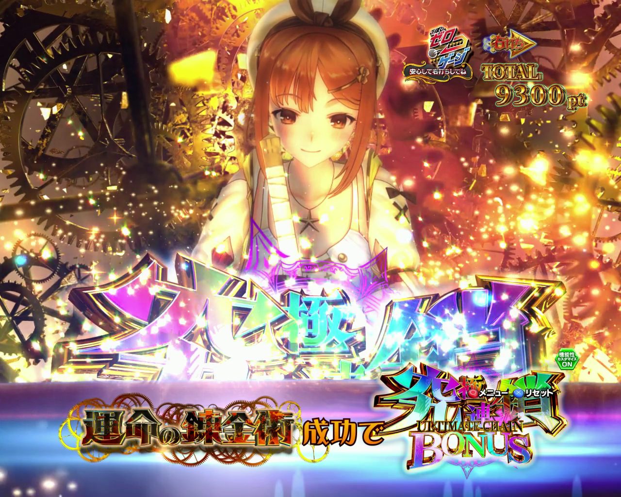 「運命の錬金術」は成功期待度約64%、1回転完結のモードとなっており、主人公のライザが錬金術に成功すれば4,500個の出玉が連鎖する「究極連鎖BONUS」を獲得。以後、成功するたびに4,500個の出玉が上乗せ(調合)されていく。なお、演出失敗時にはRUSHには復帰せず、通常時へ戻る。引き次第で大量出玉の獲得も期待できる。