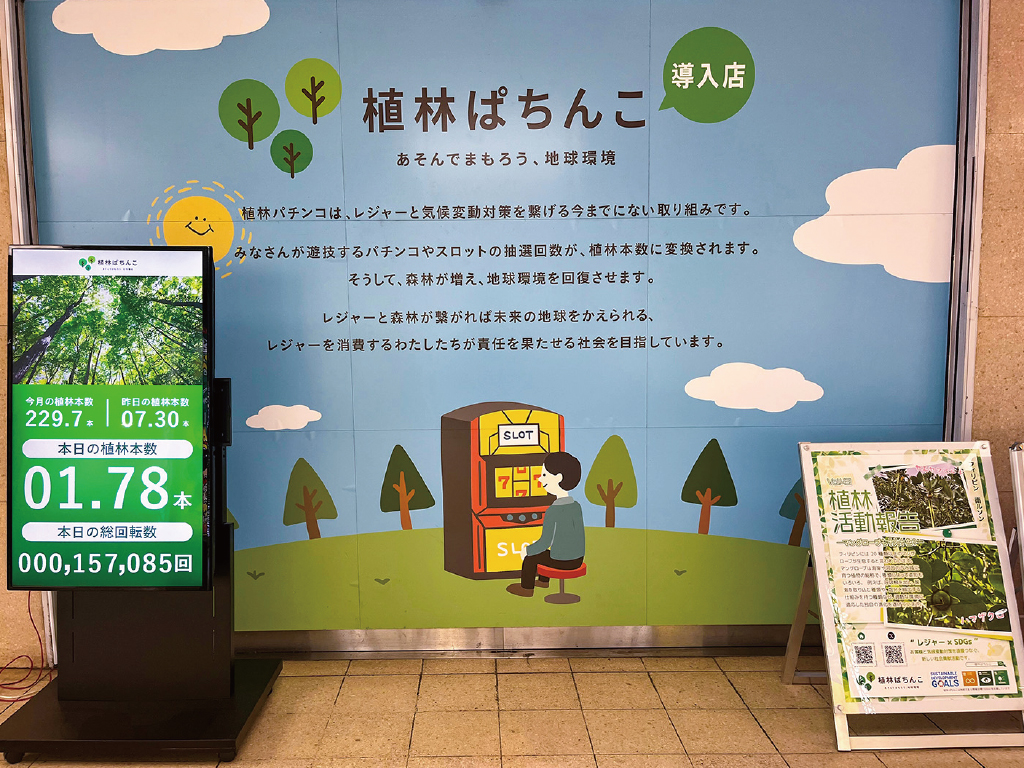 内藤 植林ぱちんこは、パチンコ・パチスロの回転数を植林本数に換算し、その分を植林団体へ寄付する仕組みです。遊びがそのまま環境貢献につながる形をつくることで、パチンコの新しい価値を生み出したいと考えました。導入店舗は3月時点で7店舗、4月末には17店舗まで広がる見込みです。植林本数も約2万4000本を超えています。ユーザーからも「遊びながら社会貢献できるのは面白い」という声を多くいただいています。