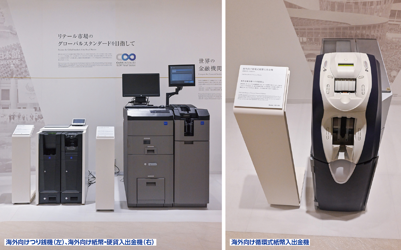 1990年代頃から、小型紙幣入金機や循環式紙幣入出金機などで海外市場へも参入を果たした。その後、業界最速の入金計数スピードや最多の取り扱い紙幣数といった強みを確立。現在では、100ヵ国以上の金融市場や小売業全般の市場で同社製品が幅広く活躍している。