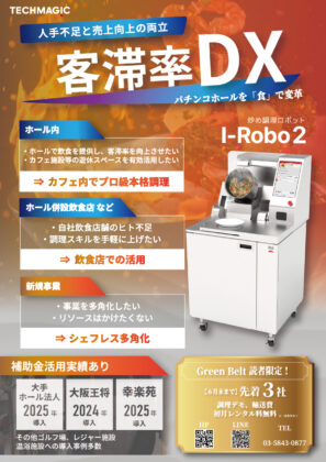 大手外食チェーン「大阪王将」や「一風堂」など導入実績も豊富で、外食産業の第一線での活躍が光る。既に、とあるホール併設飲食店への導入実績もあり、メニュー拡充や料理の品質向上に寄与。結果、顧客満足度や客単価アップにつながっているという。実際に『I-Robo 2』導入後、月商が100万円増加したお店もある。