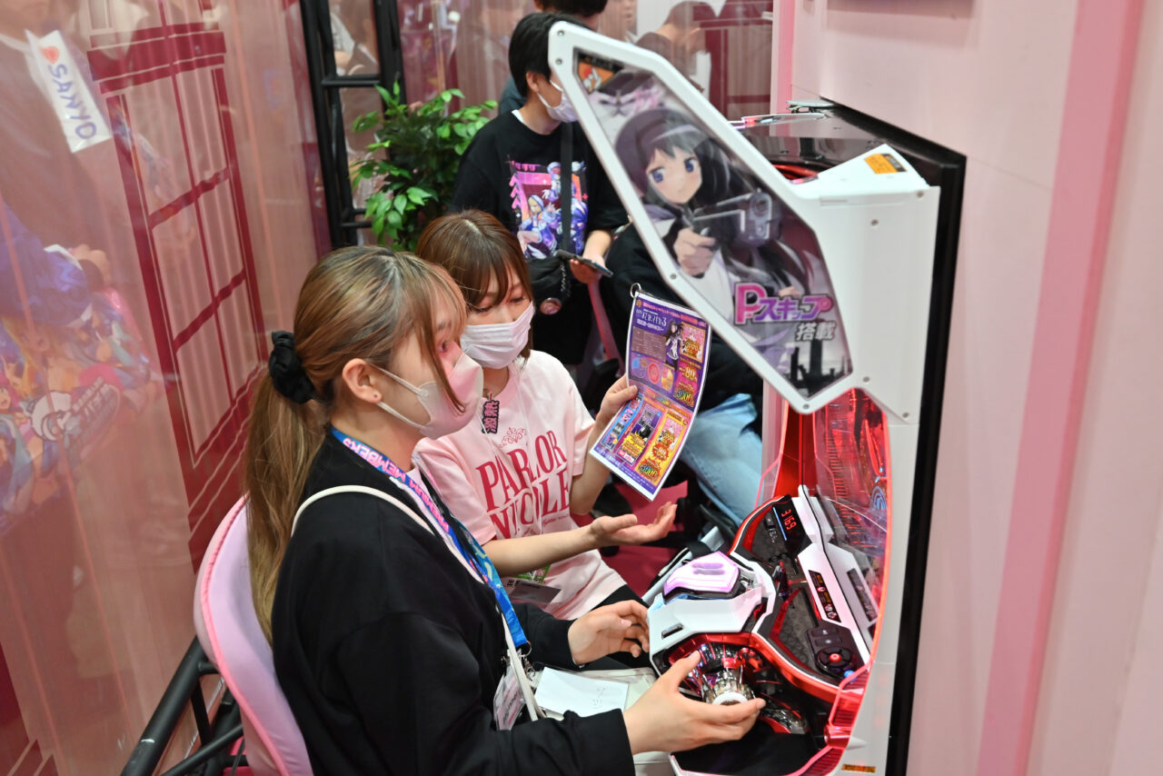ブースでは、フォトブースのほか、アニメIPを採用した最新のパチンコ・パチスロ機の試打体験(試打機10台)を用意。試打体験やSNSへのブース投稿を行うと、藤田ニコルさん監修のオリジナルグッズが当たるカプセルトイの抽選に参加できるとあり、多くの来場者が列をなした。
